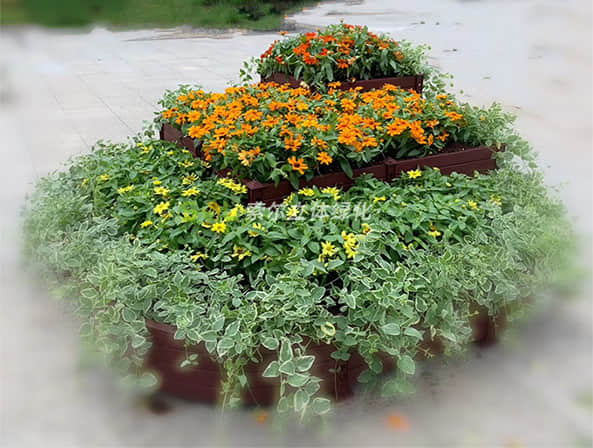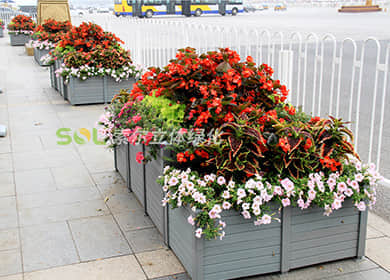 組合造景,拼接而成的花箱,可放于道路人行道、步行街、廣場等空地。
